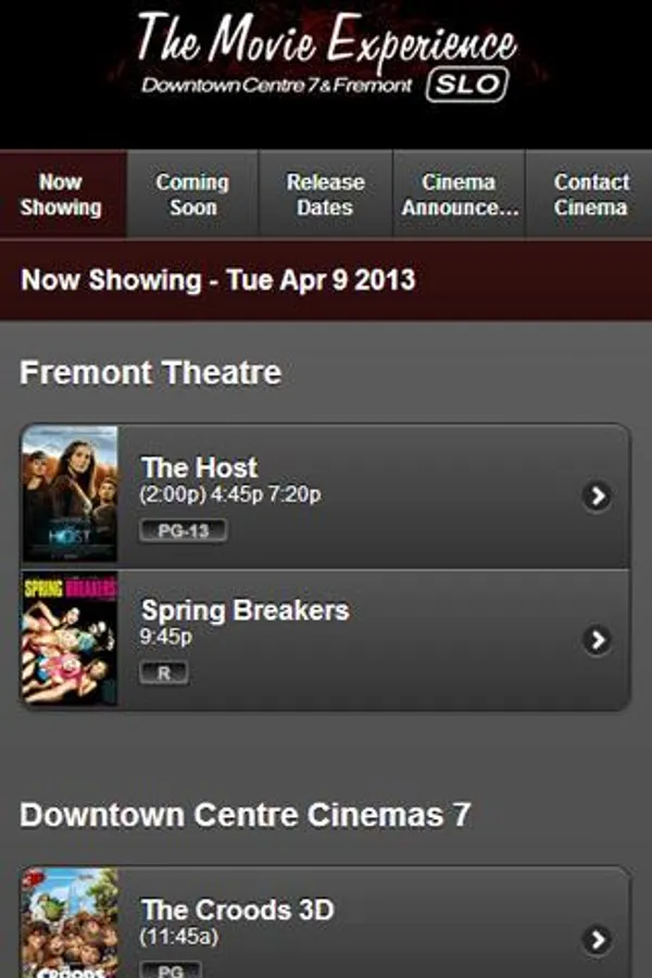 The official showtimes app for The Movie Experience - SLO (Fremont Theatre and Downtown Centre Cinema 7) in San Luis Obispo, California. Your source for movies, coming attractions, theatre news and much more.