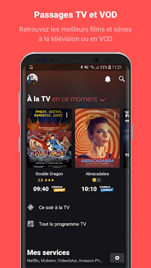 - Be alerted by push of the release of a film in his room or television broadcasting
