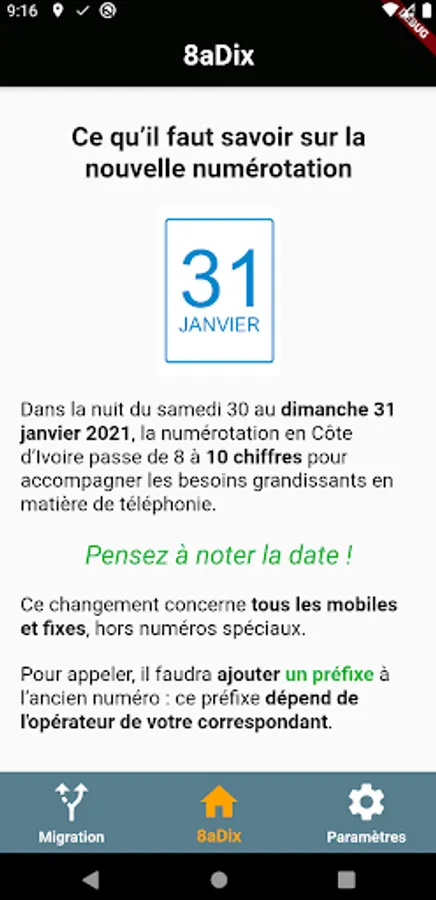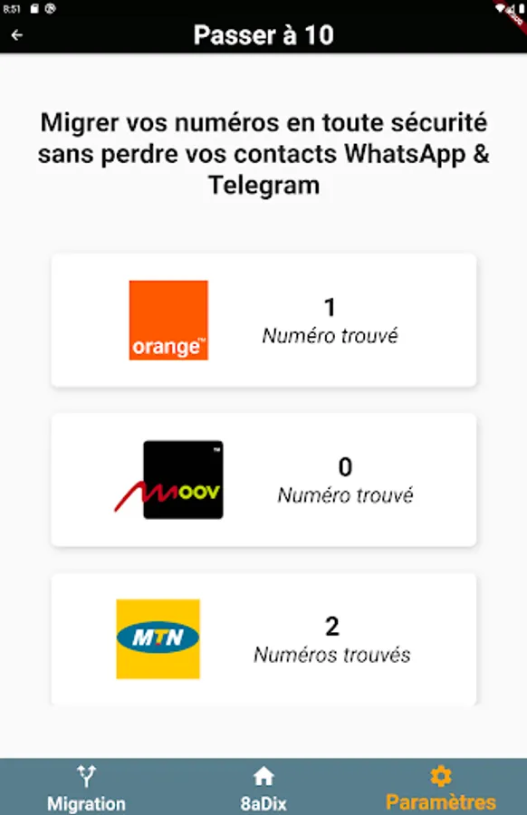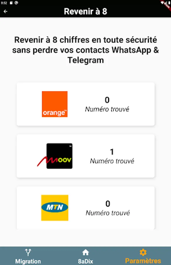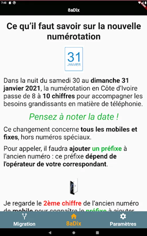 8aDix is a mobile application that allows you to update your 8 to 10 digit telephone directory in accordance with the new National Numbering Plan (PNN).