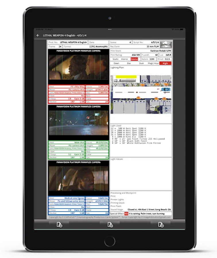 CinProCaS® is a Hollywood film’s planning application Producted by CinProCaS® Cinematography Production Cards System®