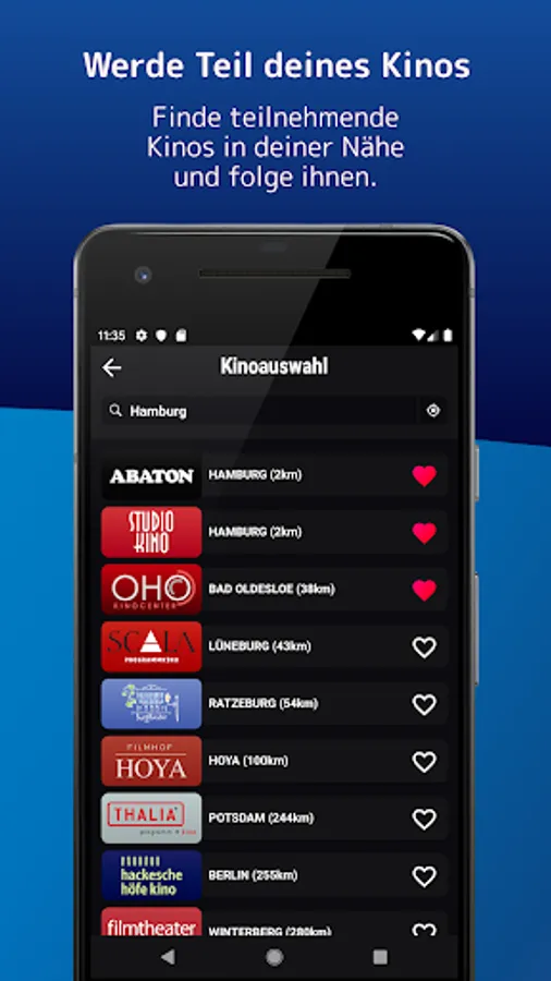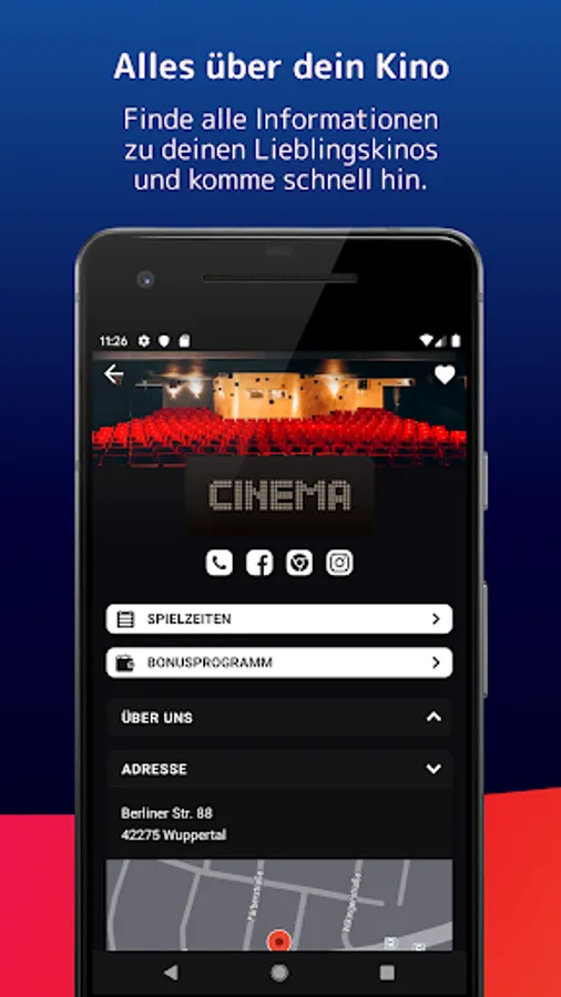 Find all information about your cinema in the app. Your cinema is still missing? Write to us at feedback@cinuru.com and we will try to get your cinema excited about Cinuru!