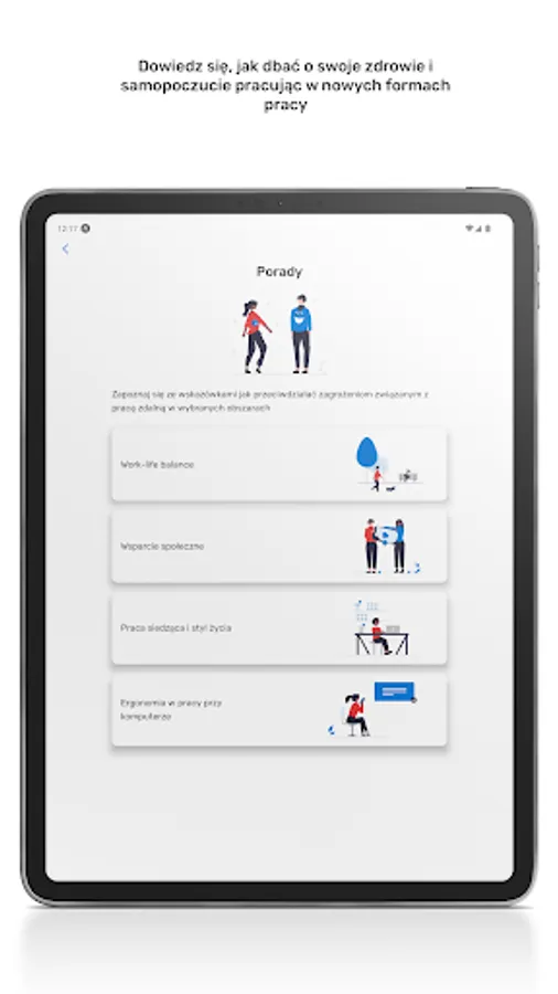 Do you work in a remote, platform work or as a freelancer? Thanks to the application, you will learn how to take care of your health and well-being while working in new forms of work.
