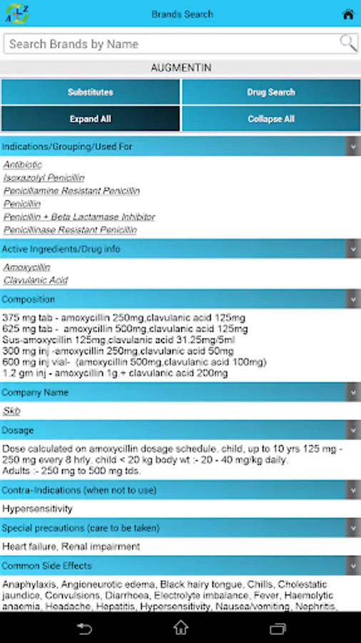 Now with the ease of use android phones & tabs from anywhere, everyone can access the complete Brand & Drug informations to support the medical advises & treatment decisions. It is being updated on monthly basis. More & more British & USA brands & drugs are being added to make it one common platform for all important drugs in the world.