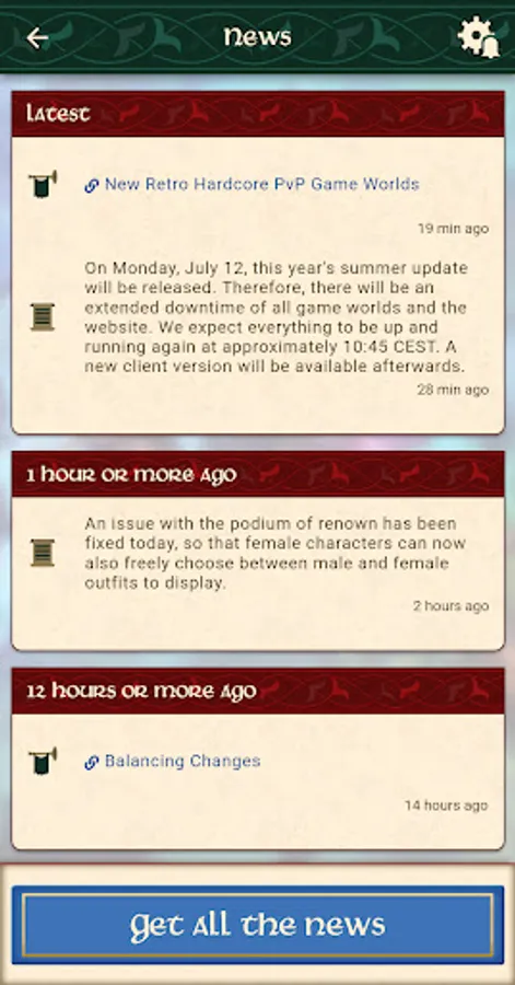 GET ALL THE TIBIA NEWS: Choose which official news regarding the game you want to get directly on your phone and decide how you want to be notified.
