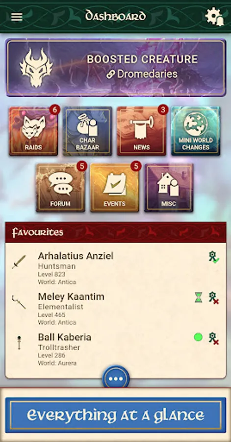 MONITOR MINI WORLD CHANGES AND FORUM POSTS: The app is able to scan the game for mini world changes relevant to you. It can also notify you of answers to your posts on tibia.com.