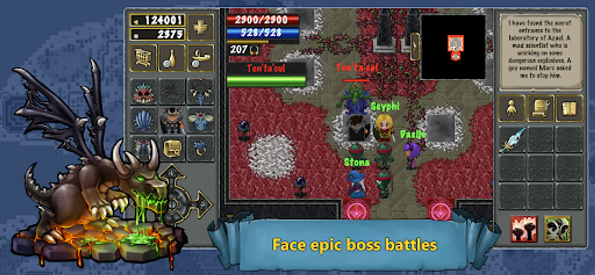 Go on a journey with hundreds of hand crafted and unique quests. Slay hundreds of different monsters and fight powerful bosses.