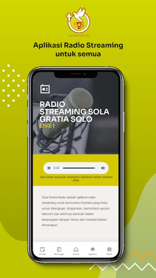 Merupakan aplikasi media bagi jemaat GBIS Sola Gratia Solo. untuk mendapatkan informasi dan penyegaran iman melalui informasi, renungan dan radio online. Sehingga dapat membawa jemaat GBIS Sola Gratia Solo mendekatkan diri kepada Tuhan