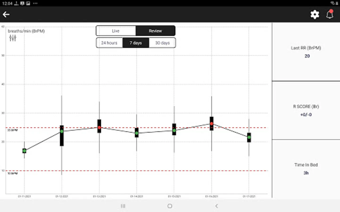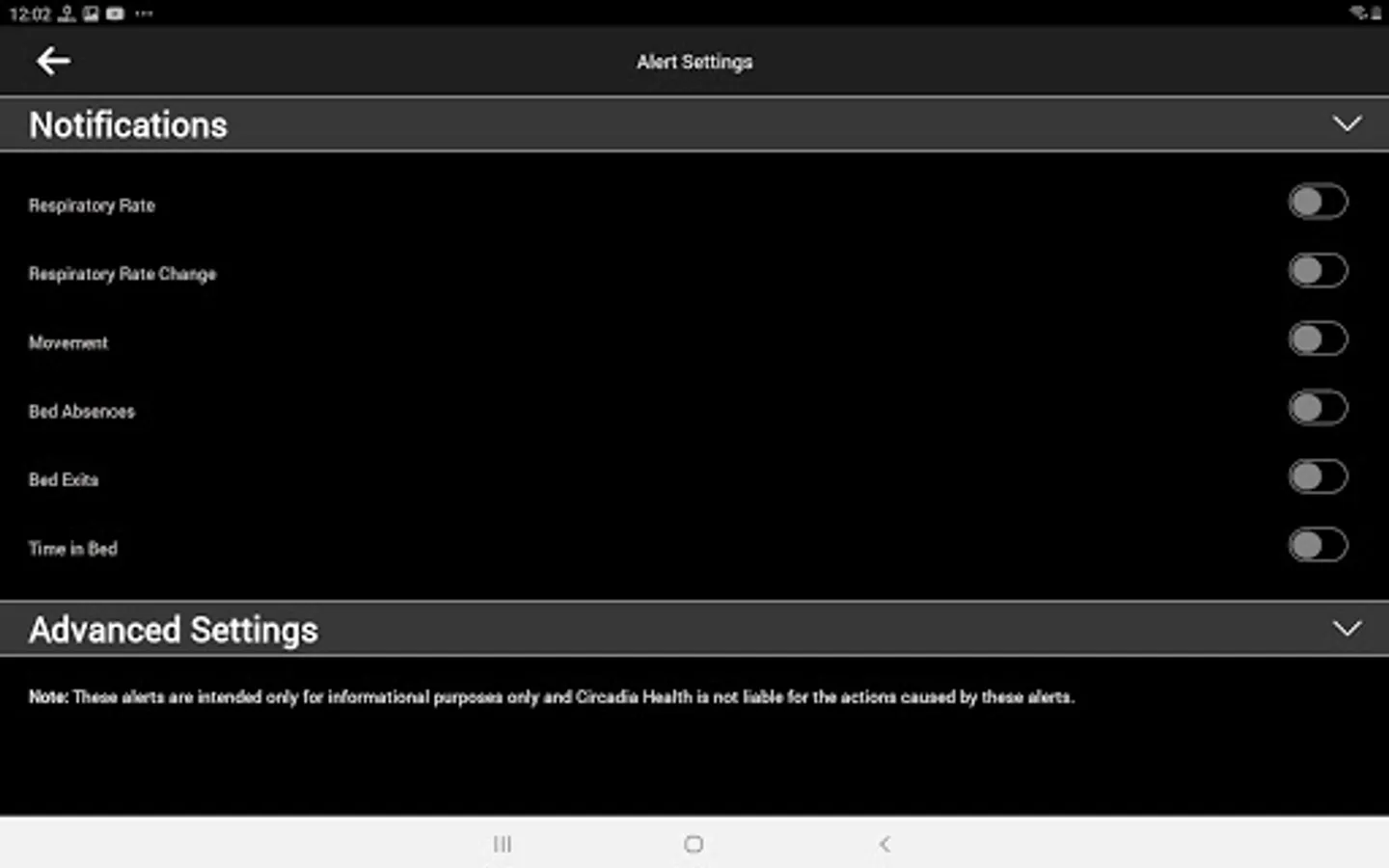 The Circadia Pro is an app used in clinical settings for various purposes. The app is used alongside a Circadia C100 device which uses radar to extract respiratory rate data and other physiological data. The Circadia Pro App visualises data from these devices using a dashboard and contains an alerting system based on the collected data to alert nurses of deteriorating patients. Furthermore the Circadia Pro App is used to connect each device to the dashboard.