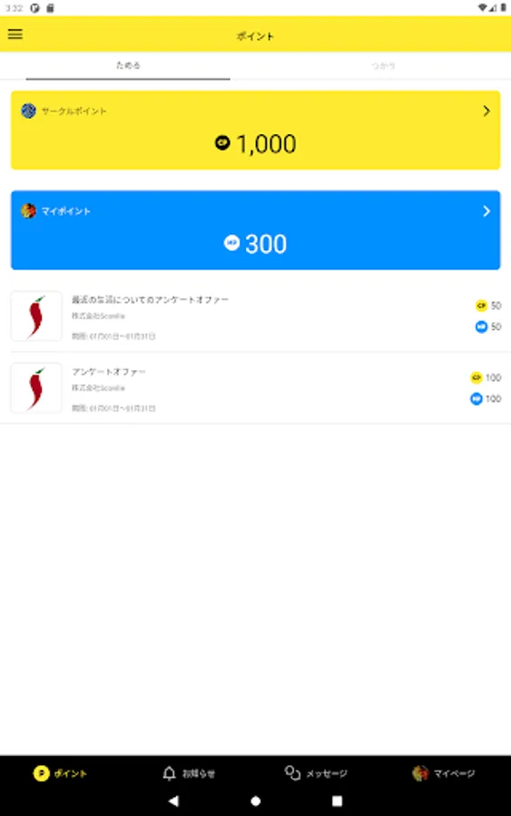 Register your personal profile and circle in Circle Up and you will receive offers from your company. The types of offers are related to marketing activities such as surveys. By answering the offer, you will earn "Circle Points", which is the activity fund of the circle, and "My Points", which is your personal activity fund. Enrich your student life by connecting with companies through circle-up!