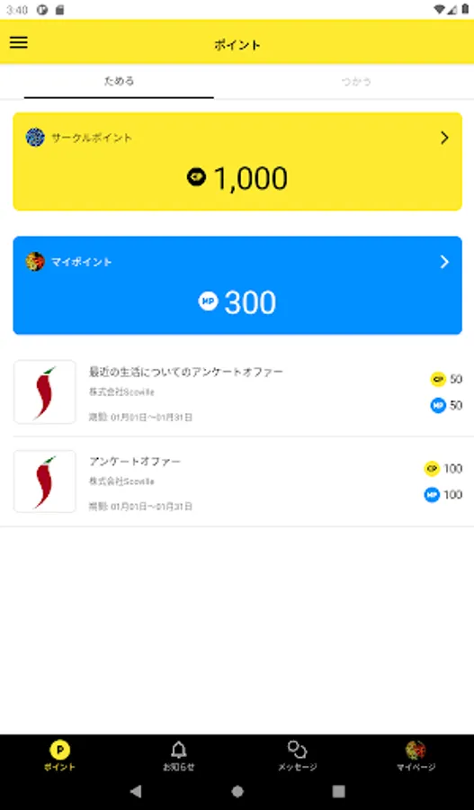 The accumulated "Circle Points / My Points" can be exchanged for cash for 1 point = 1 yen!