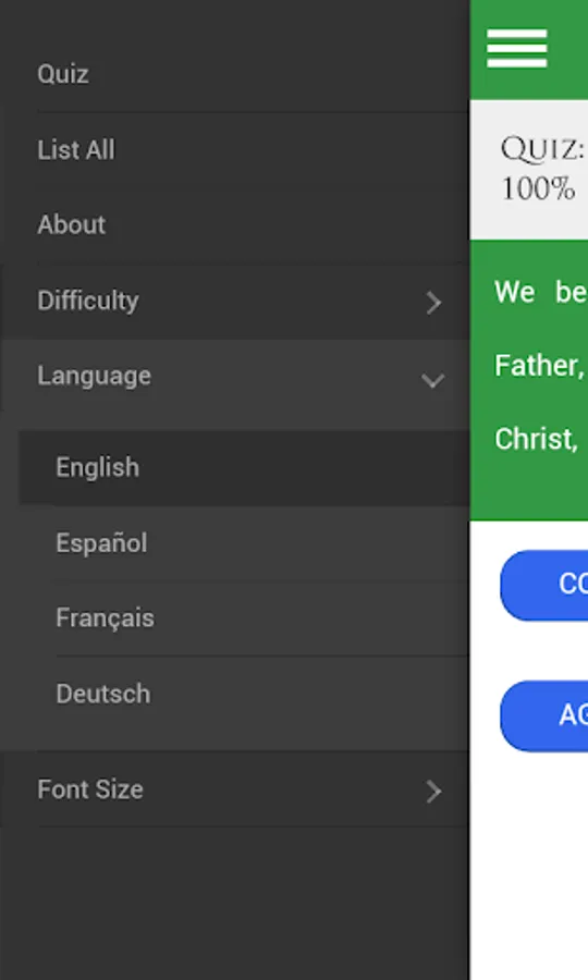 Supports 4 languages: English, Spanish, French and German. Also options to change font size for easier readability.