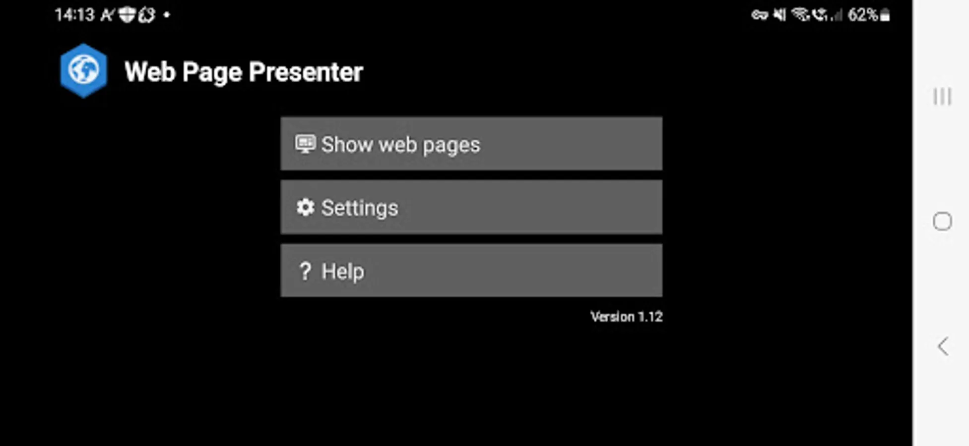 This simple app displays a sequence of web pages full screen without the address bar or tool bar.