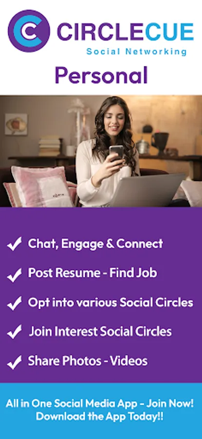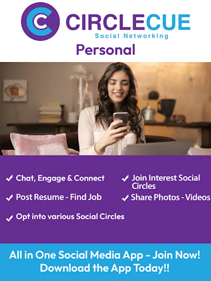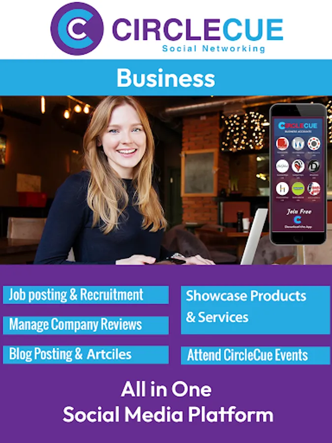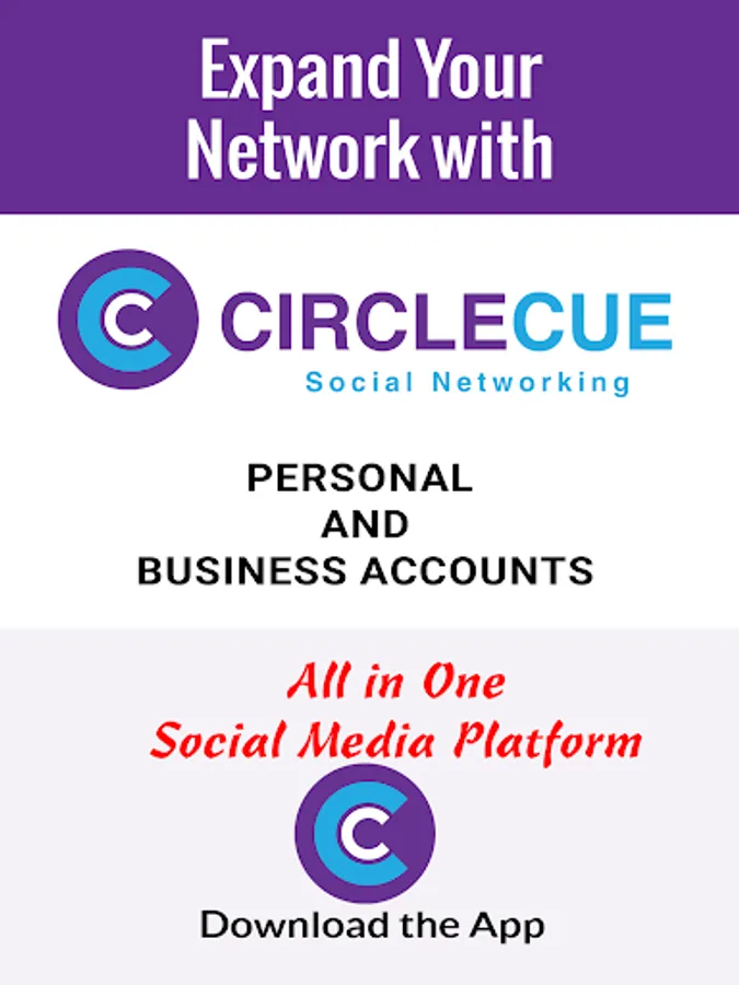 CircleCue is a unique social media app that provides an all-in-one networking platform for both personal and business users. Combine all your favorite features from popular apps in an easy-to-use interface. Personal users can access new social circles, explore work possibilities, post resumes, leave reviews for businesses, share travel experiences, find dates, dine out, and create videos and albums. Business users can expand their reach through product launches, job offers, blogging, press releases, events, and more. Join for free by downloading the mobile app and trying out both personal and business user features to experience the full scope of CircleCue networking.