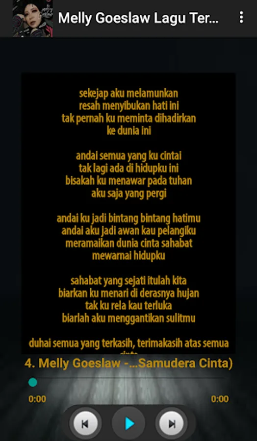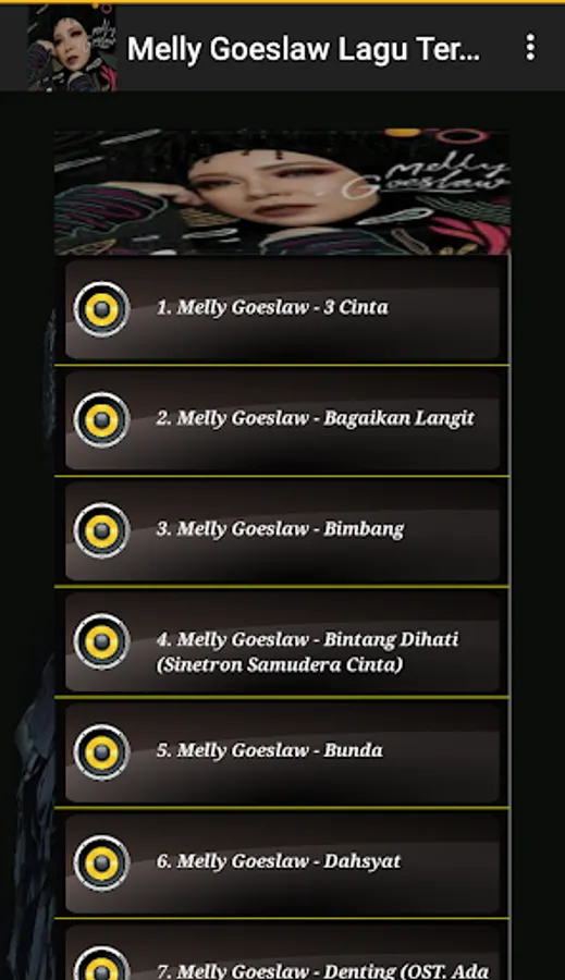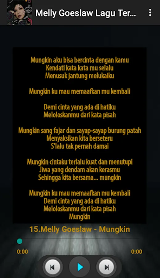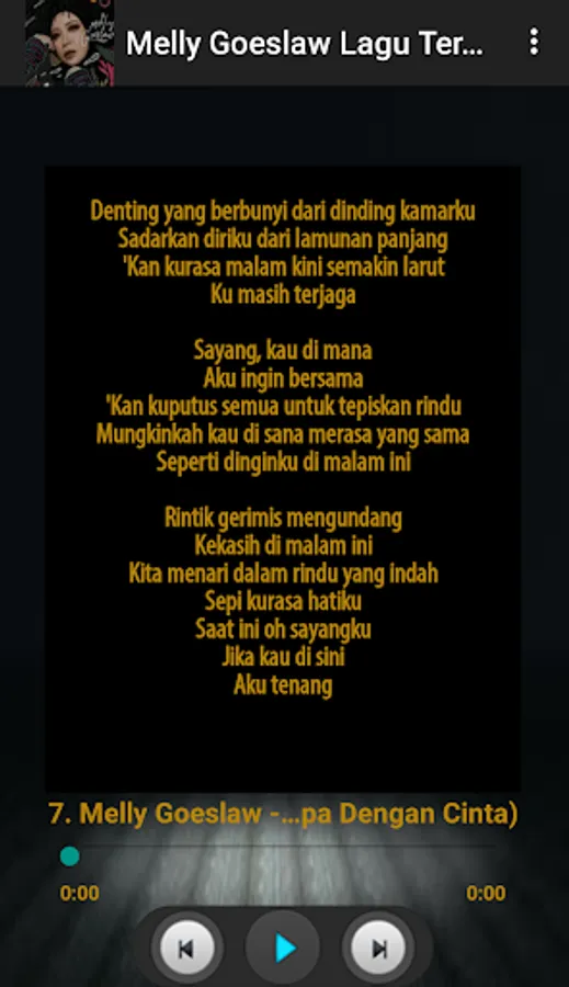 This Melly Goeslaw song application is a music application for all of you for pop music lovers.