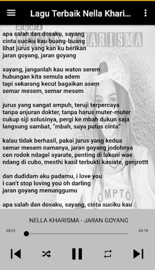 This nella kharisma song application is a music application for all of you for music lovers of Javanese dangdut koplo songs. The song Nella Kharisma is widely liked by teenagers to adults.