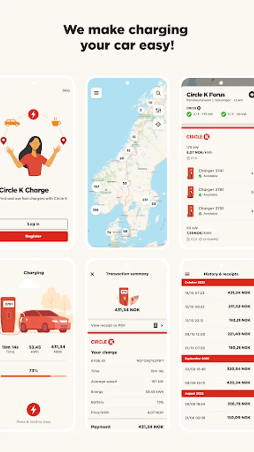 The Circle K Charge app is easy to use, gives you a great overview and access to practical functions when charging in Sweden, Norway, Denmark or Estonia
