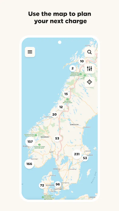 The Charge app can be used all over Scandinavia. You will therefore have the same charging experience in all countries - no matter where you are.