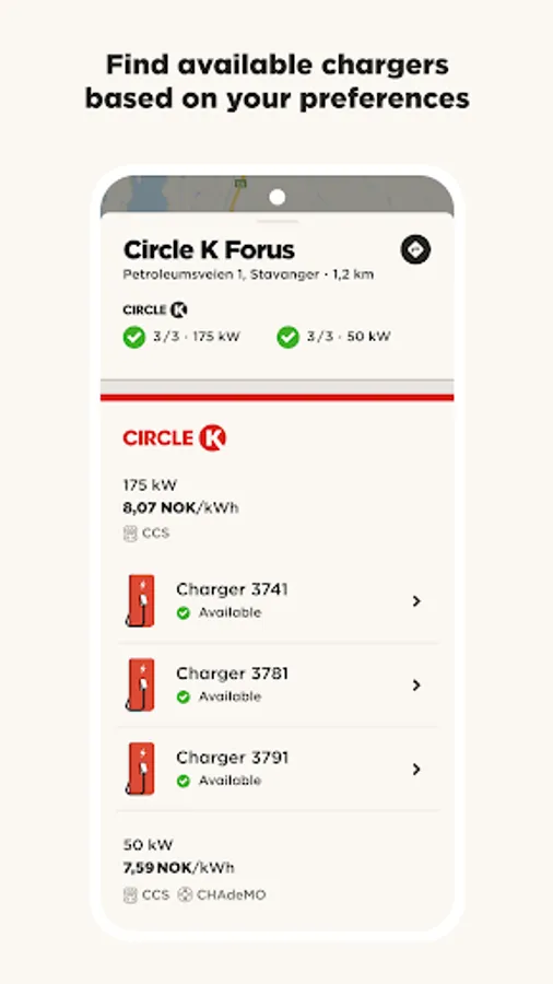 The charger map makes it easy for you to find the nearest station, charging stations along your route or an overview of available chargers so you don’t have to spend more time than necessary on planning your trip.