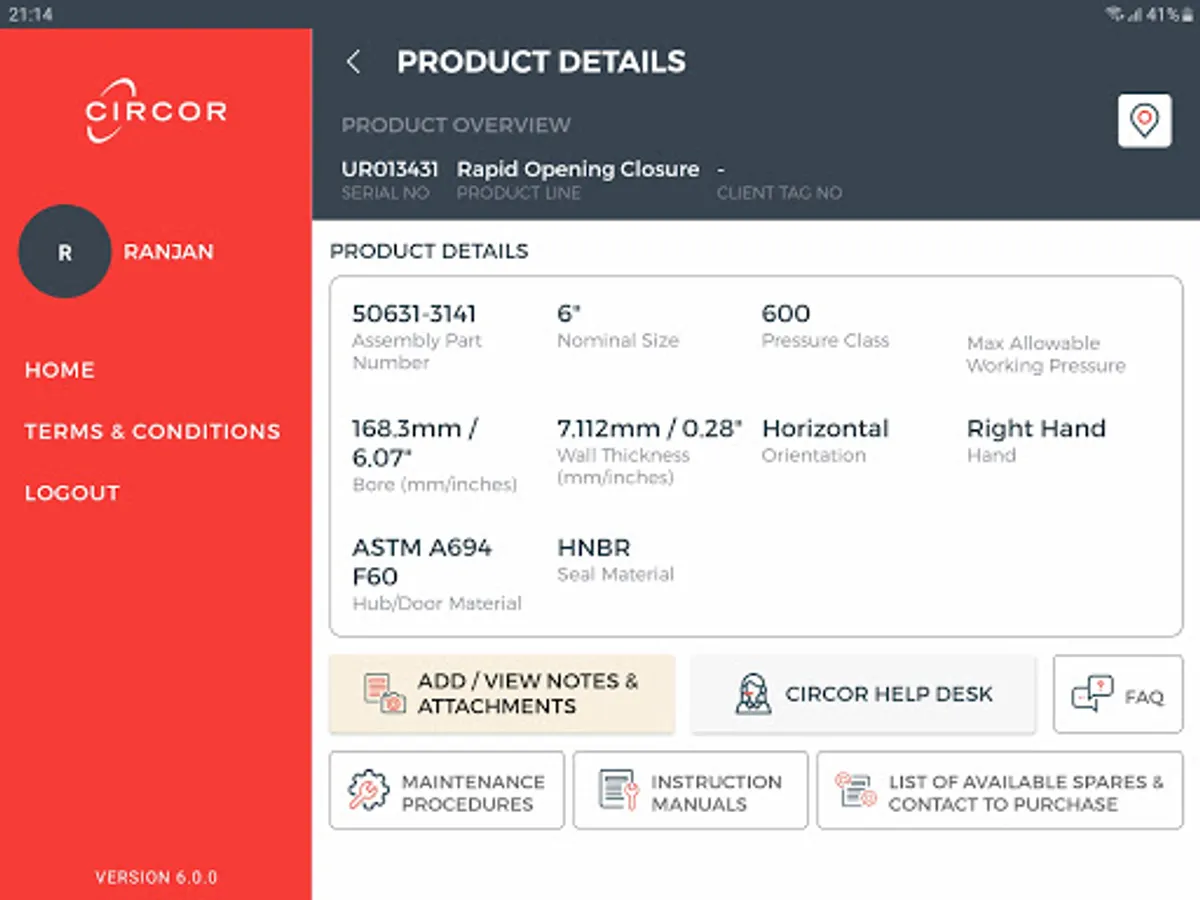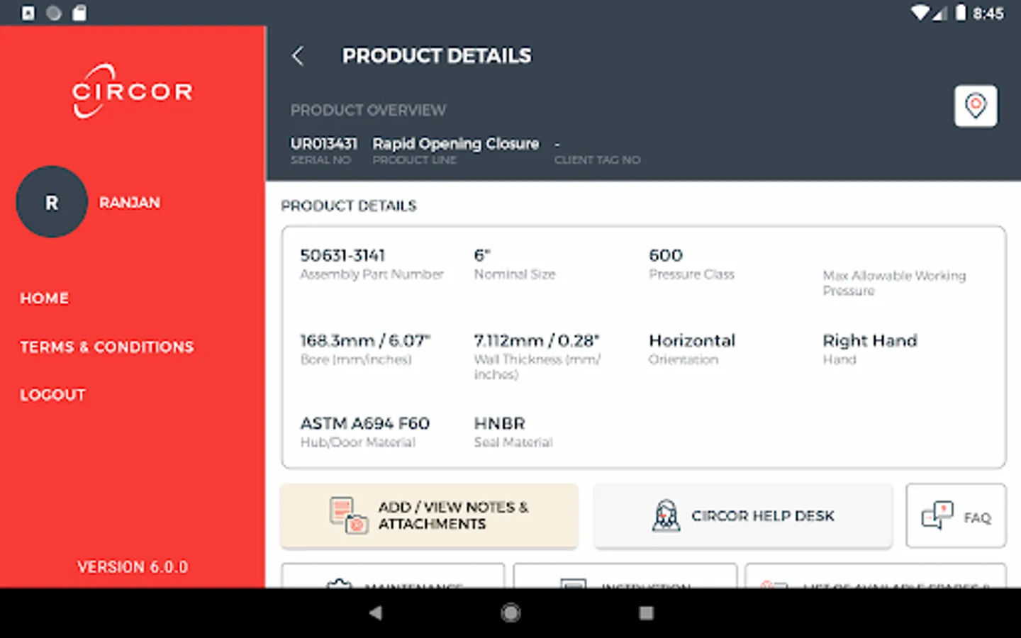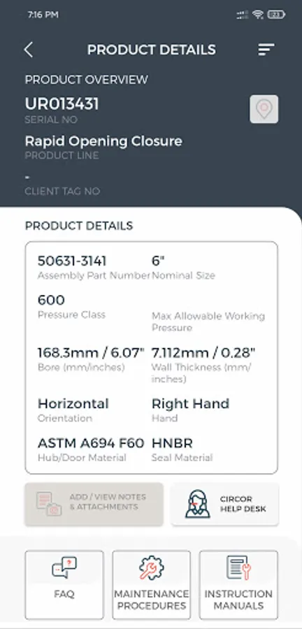 Users are able to scan a QR/NFC tag located on the product to obtain specs, maintenance procedures, drawings, and support information that is specific to that unique product. Users are also able to manage their installations through assigning installation detail, uploading field photos, and keeping maintenance notes within the app. The app also brings the SMARTs of CIRCOR’s support staff out into the field – allowing you to increase uptime and enabling CIRCOR to support the critical things your business does to keep us all safe, productive, and moving!