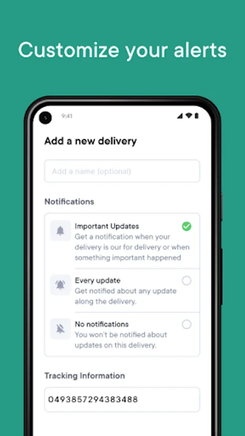 ✔️ Get notifications when your tracked package is on the way, and when delivery has been attempted so you never miss out