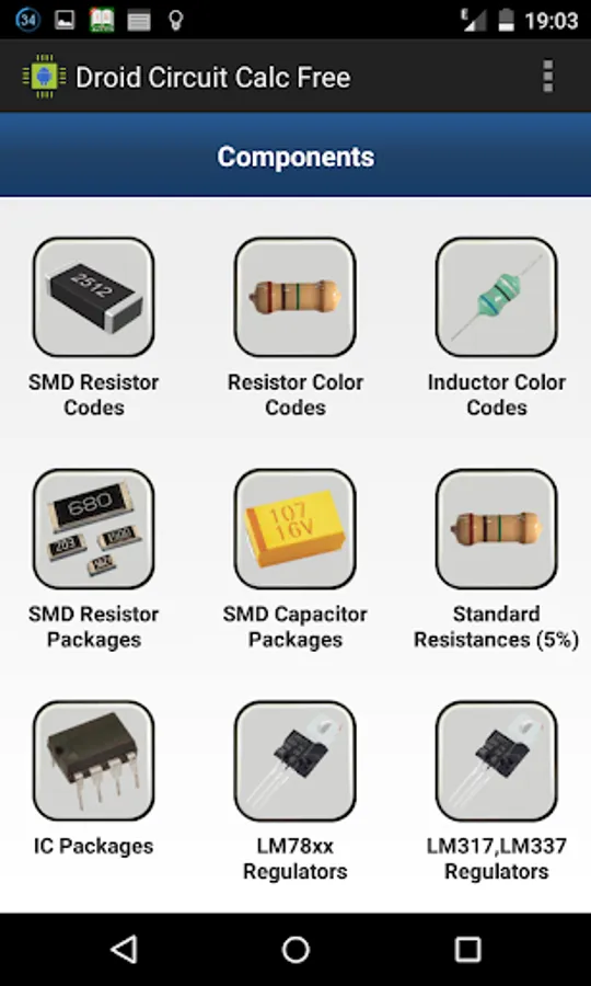 Droid Circuit Calc Pro has free electronics circuits, electronics calculators, components info, pinouts, resources, cables data and much more. It helps and makes it lot easier to do calculations for your circuits and design works.