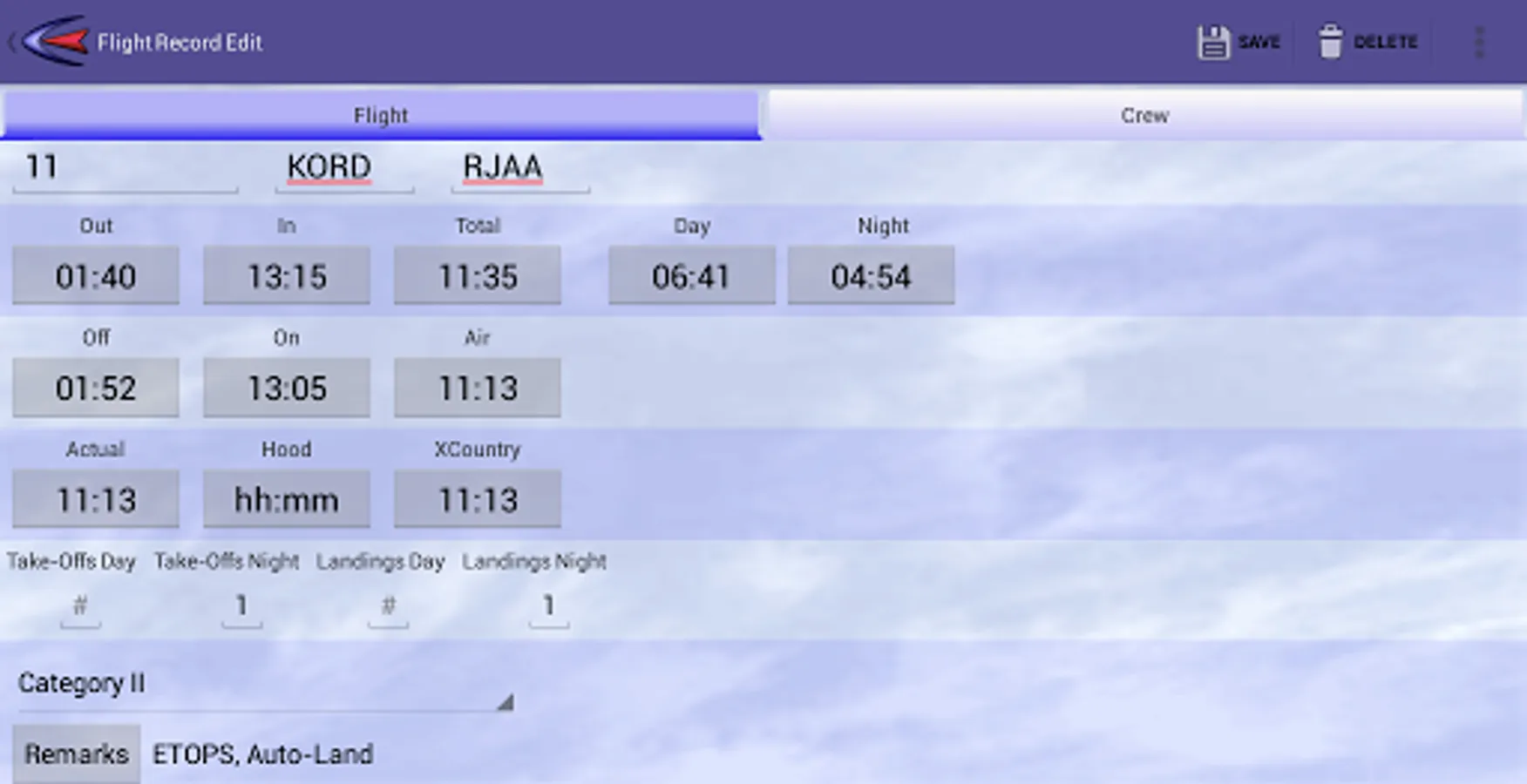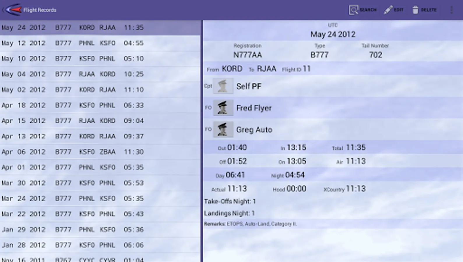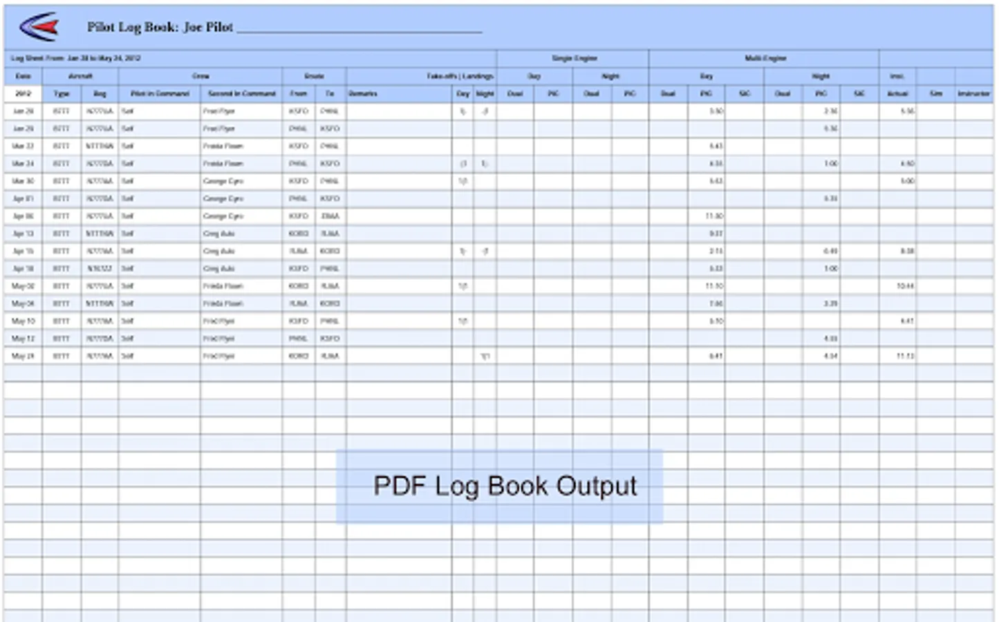 * Auto time calculation - automatically calculates PIC/SIC and multi/single engine time