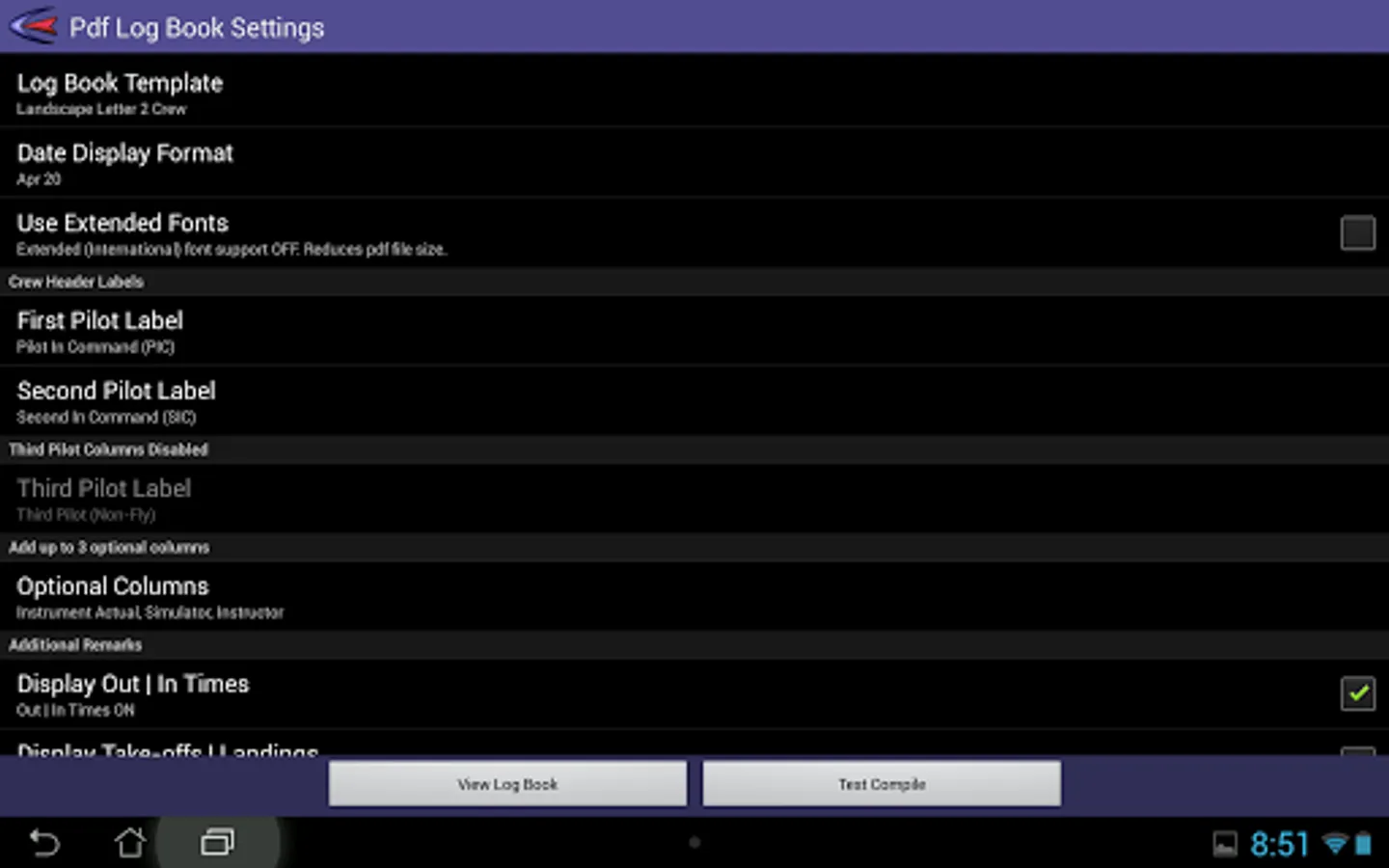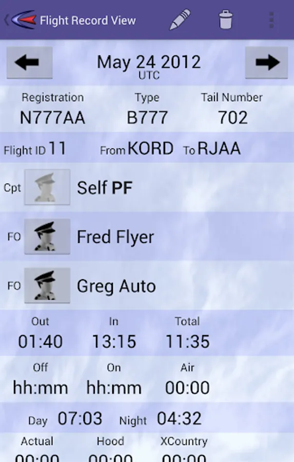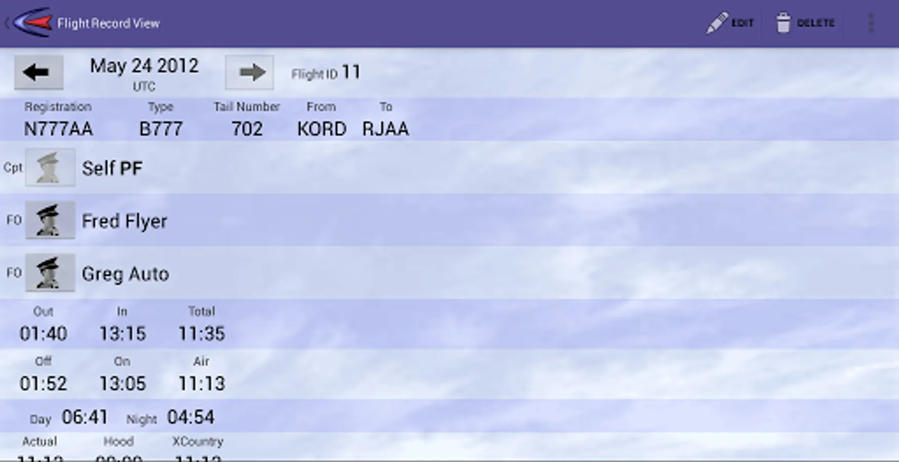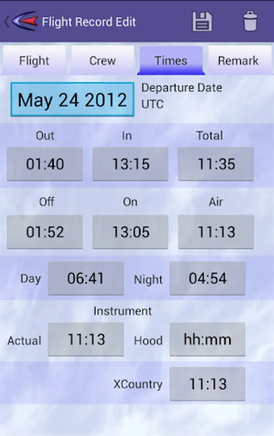 * Auto time calculation - automatically calculates PIC/SIC and multi/single engine time