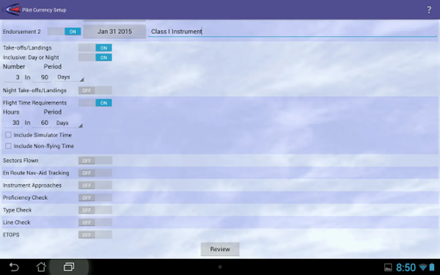Keep track of your important currency events such as required take-offs and landings. Customize the programmable currency calculator for your particular needs. Demo mode available.