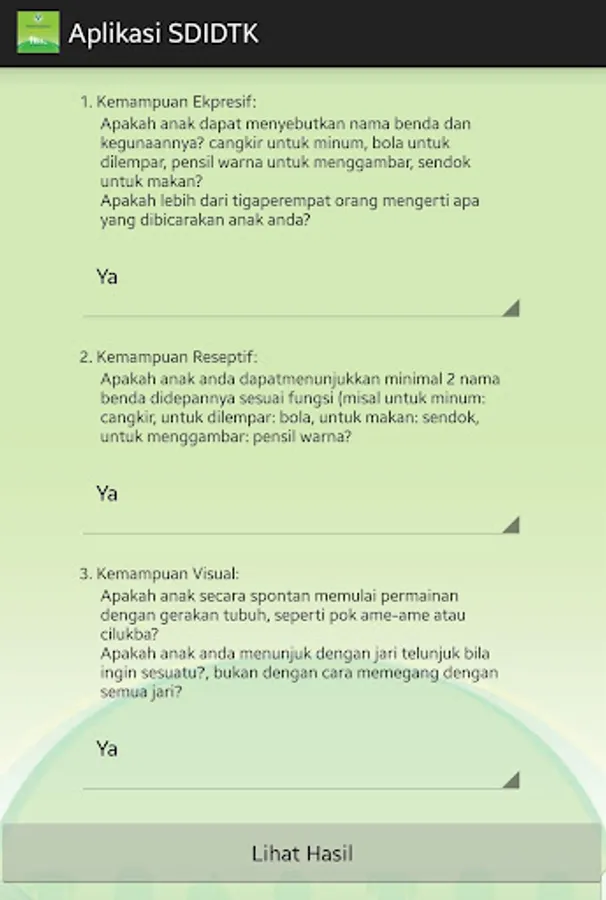 SDIDTK application is an application that is used to stimulate, detect, and intervene early development of children aged 3-72 months. This application was made referring to the SDIDTK book which was issued by the Indonesian ministry in 2016 aimed at making it easier for families to monitor child growth and development