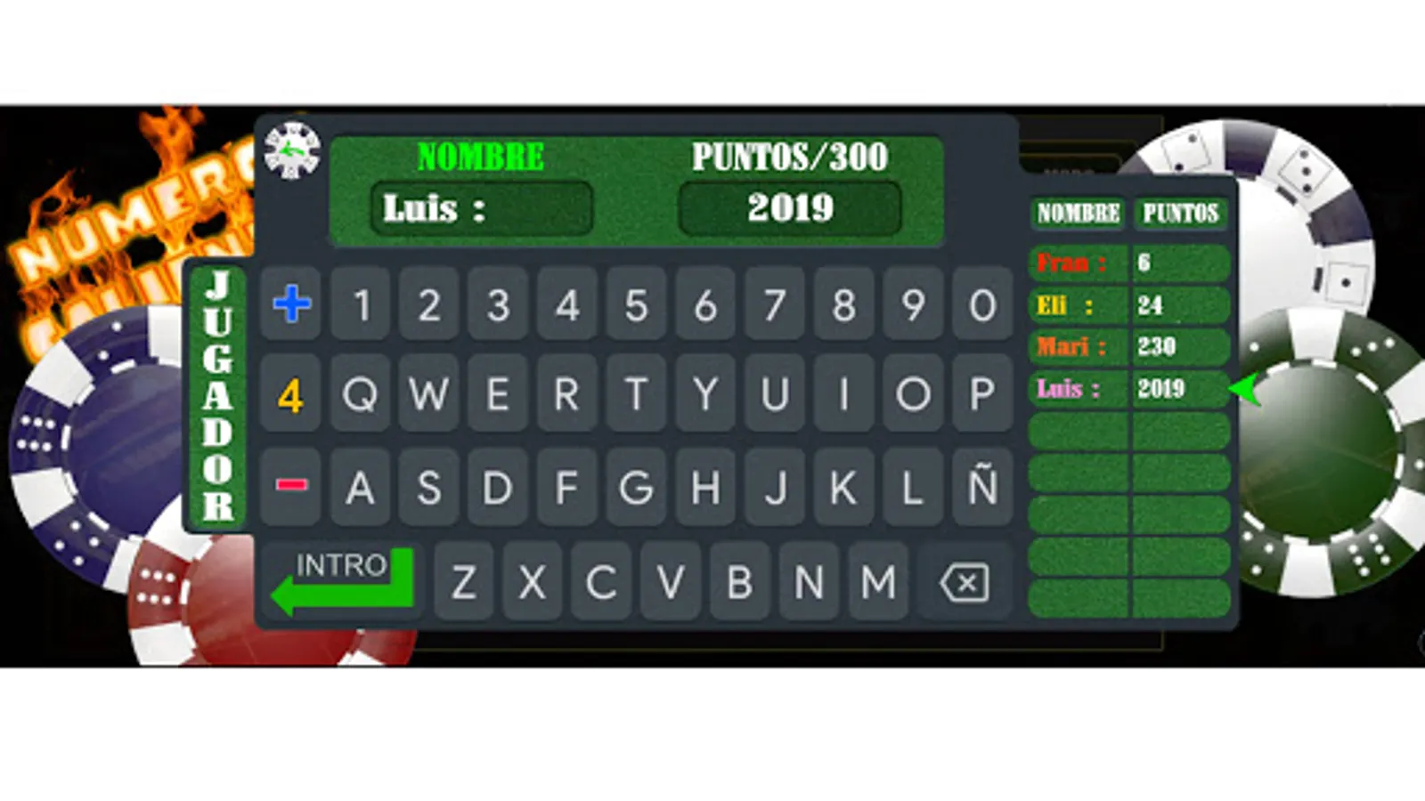 Completely random app, with several players (8) to whom you can put the name and add and delete points.