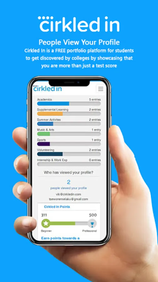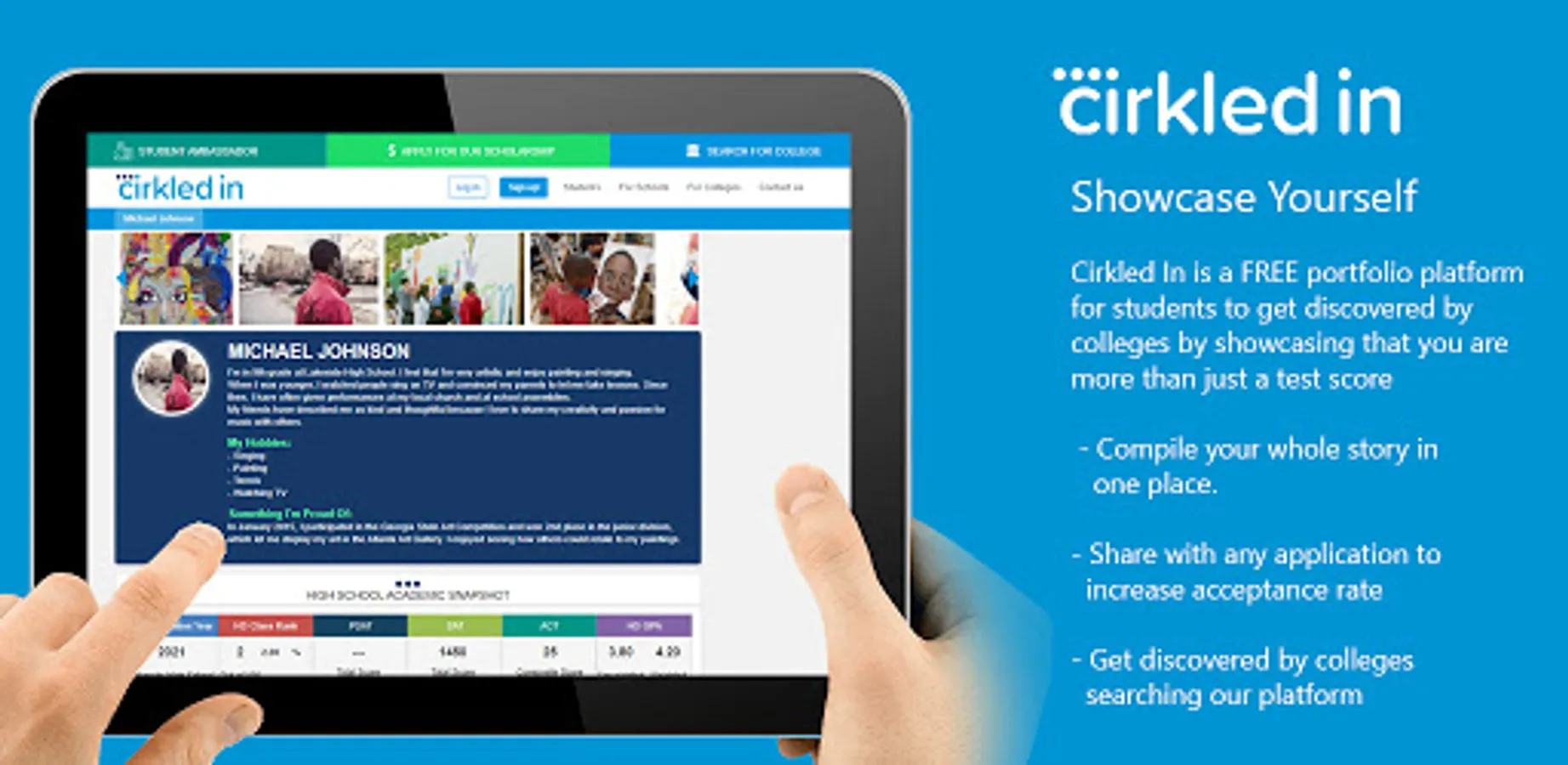 Cirkled In is a FREE portfolio platform for students to get discovered by colleges by showcasing that you are more than just a test score.