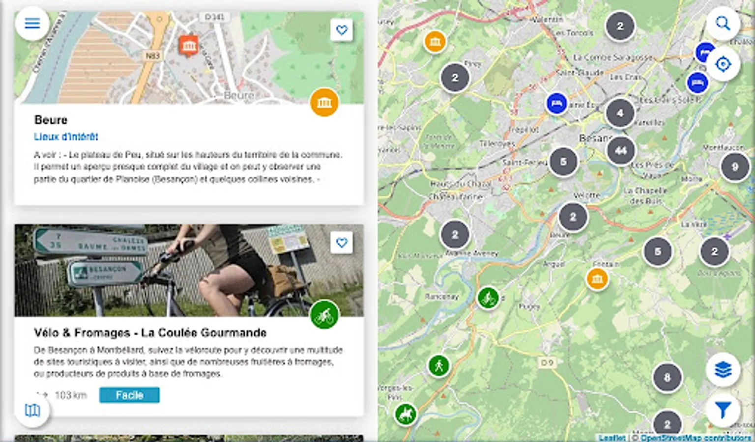 Discover the best things to see and do around you through more than 300,000 places of interest and 40,000 tourist routes and walks in France and Belgium.
