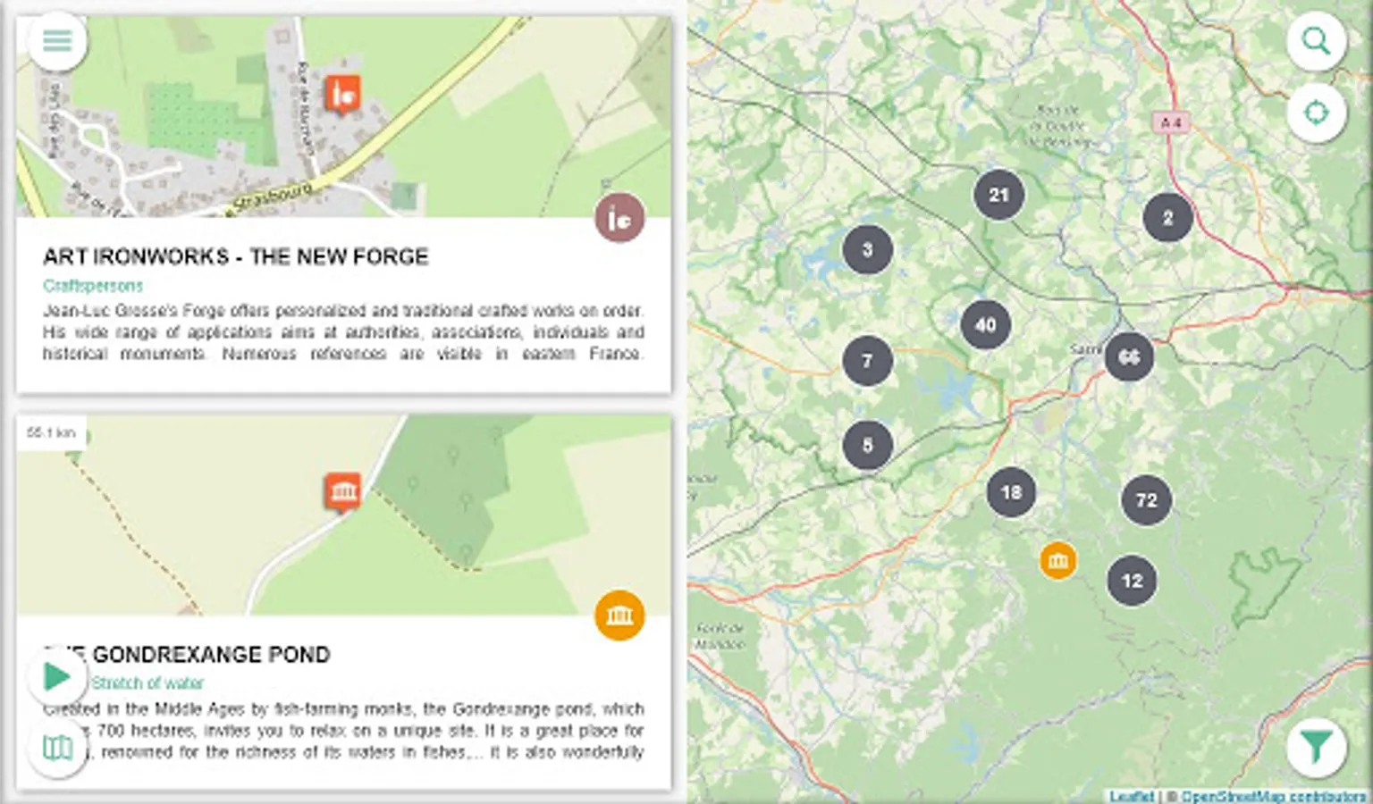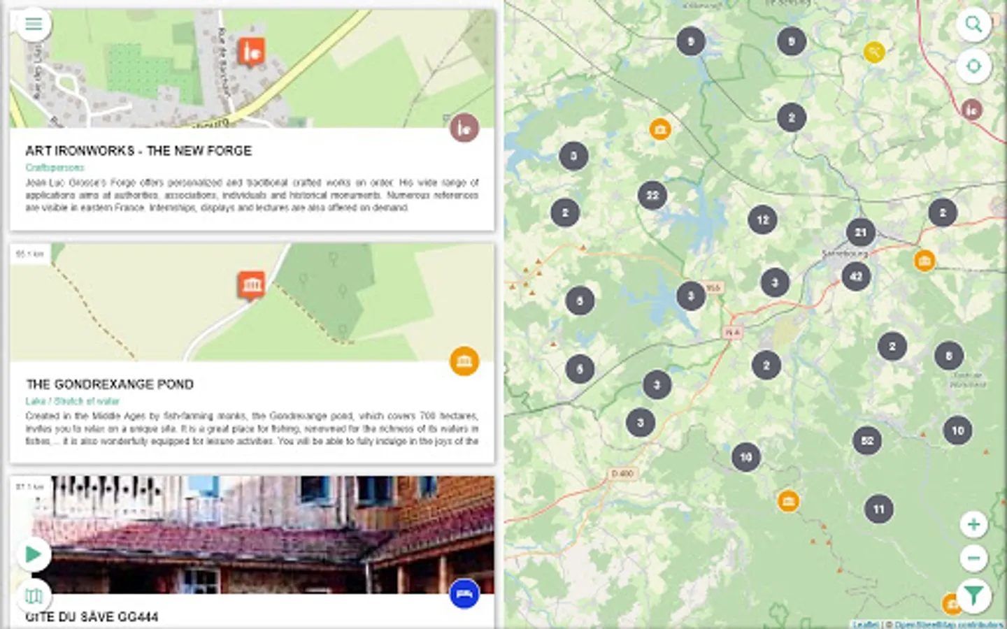 Geolocated points of interest : accommodation, restaurants, tourist sites, ... will help you to organise your visit.