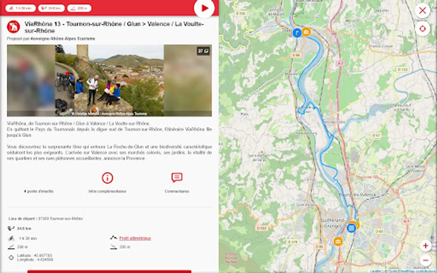 • A list of the closest itineraries to where you are, based on a geolocation module.