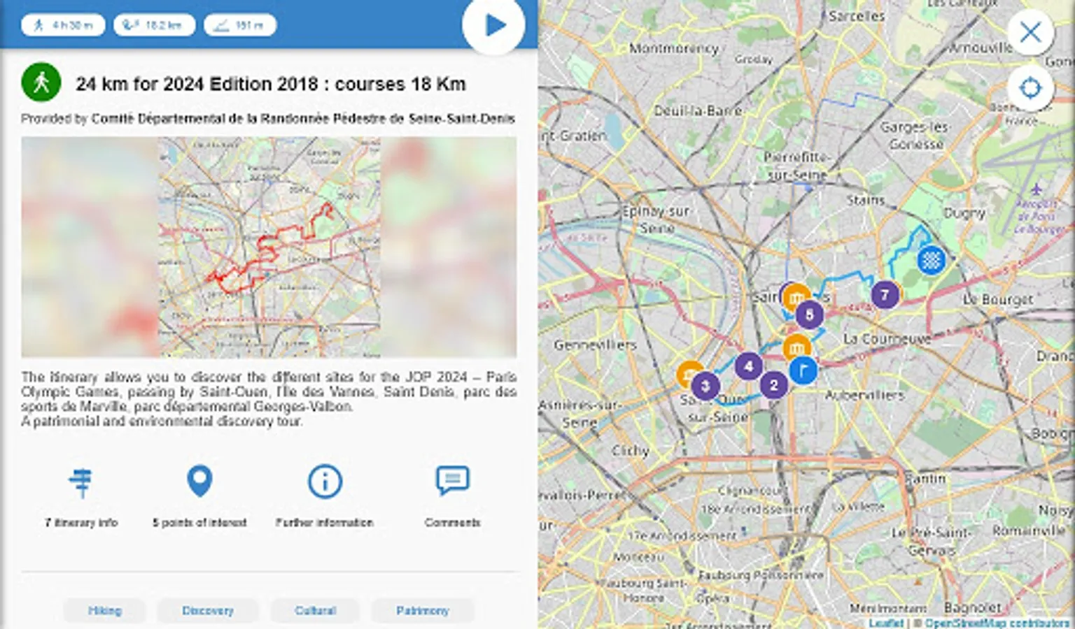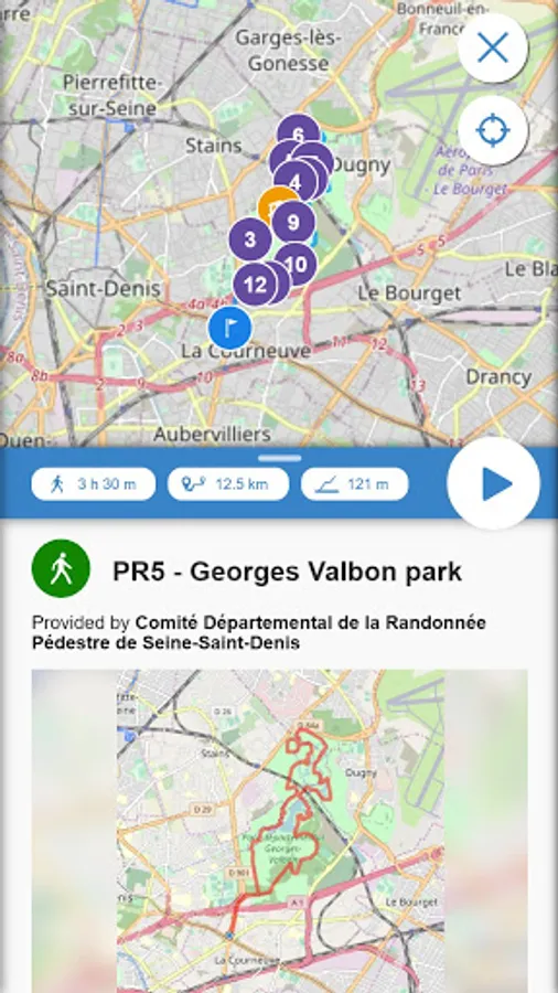 With the “Les chemins de Seine-Saint-Denis” (The pathways of Seine-Saint-Denis) app, your smartphone or tablet will guide you in real time on our PR local hiking trails, all certified by the Fédération Française de Randonnée Pédestre (French Federation of Hiking).
