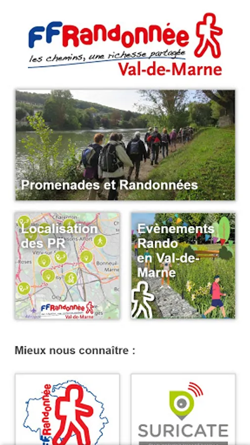Et pourquoi ne pas rejoindre les marcheurs de la FFRP au sein de l’un des 30 clubs du département ? Grâce à leurs animateurs, vous serez accompagné(e) également au-delà du Val de Marne sur des randonnées de groupe, en semaine ou en weekend, voire en court séjour, dans une ambiance décontractée mais néanmoins tonique, la randonnée étant un sport touristique et de pleine nature. Rendez-vous sur le site du Comité Départemental, de nombreuses rubriques, dont les coordonnées des clubs, vous renseigneront et vous inciteront peut-être à intégrer le groupe des 2200 marcheurs valdemarnais adhérents de la FFRP (https://val-de-marne.ffrandonnee.fr/ )