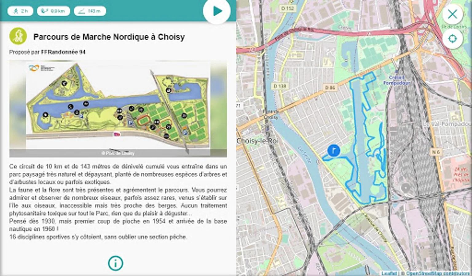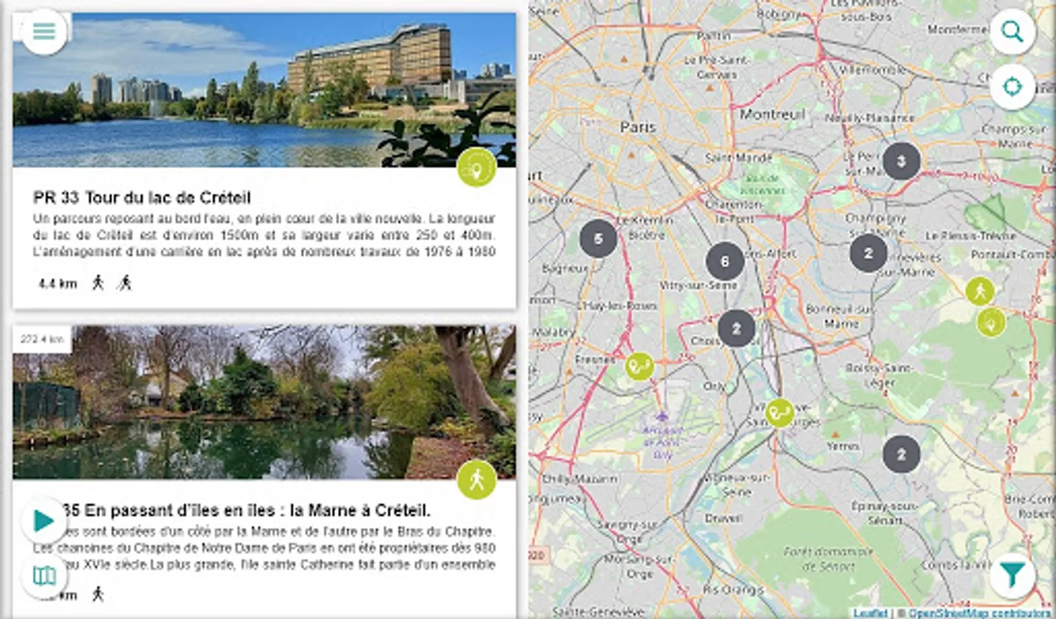 Dans cette application dédiée aux balades et randonnées dans le Val de Marne, vous découvrirez près de 40 itinéraires en pleine nature, en forêt ou en milieu urbain, tous balisés et entretenus par le CDRP94 avec le soutien du Conseil Départemental.