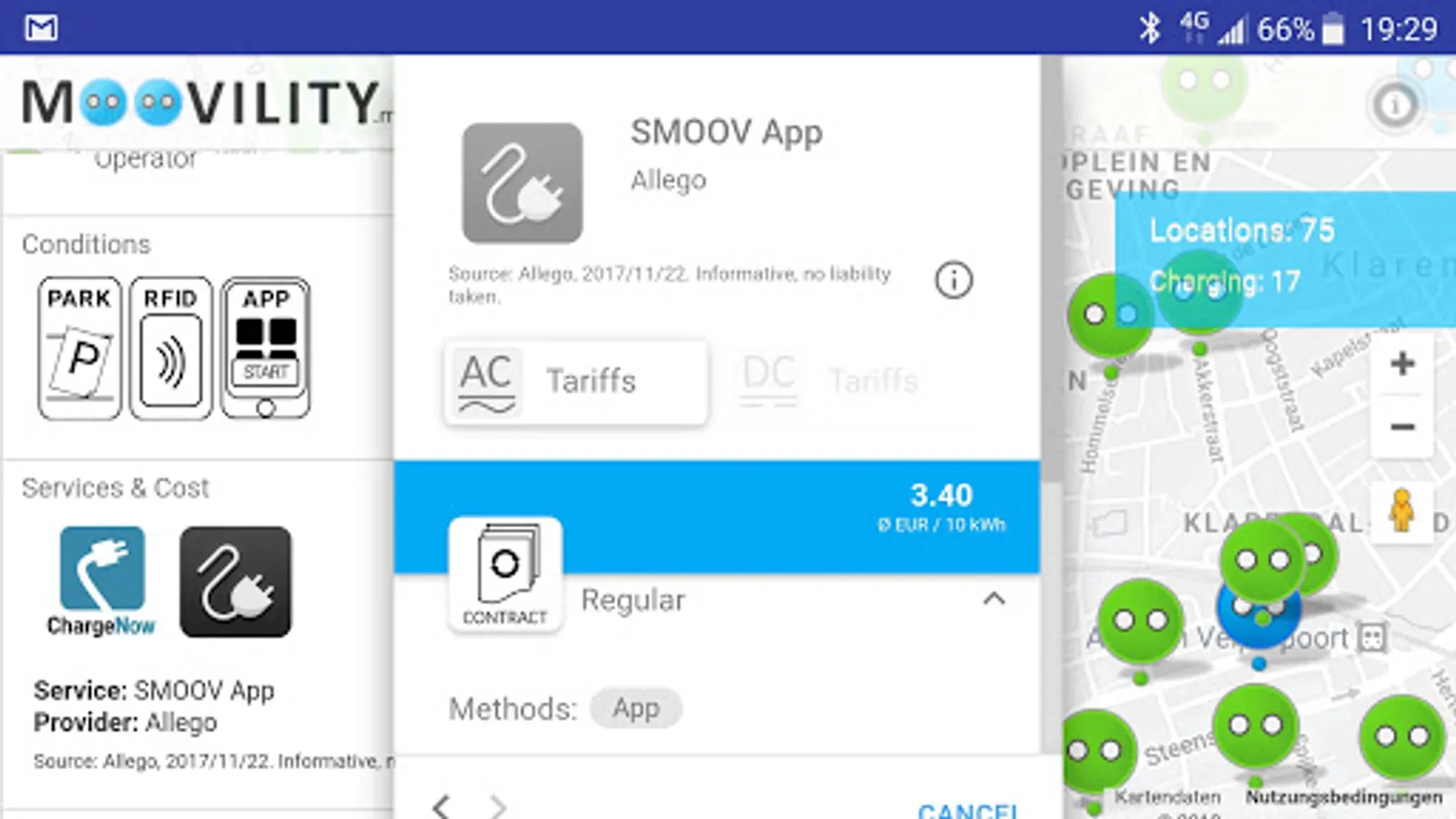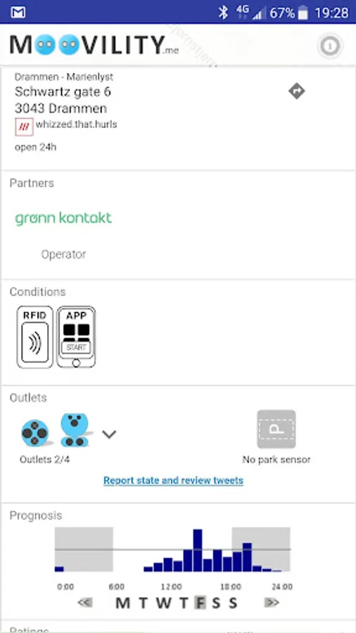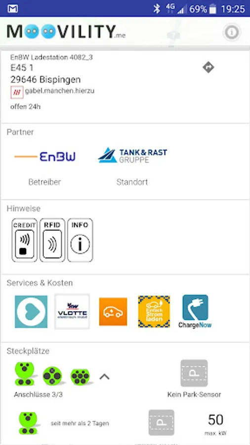 Relevant EV charging info on plugs, power etc. included and, additionally, see availability, reservation options and parking sensor status where available.