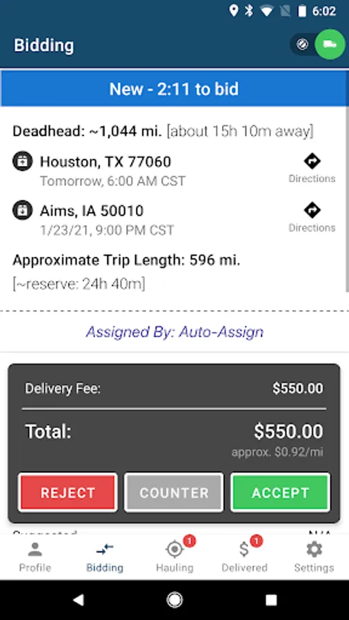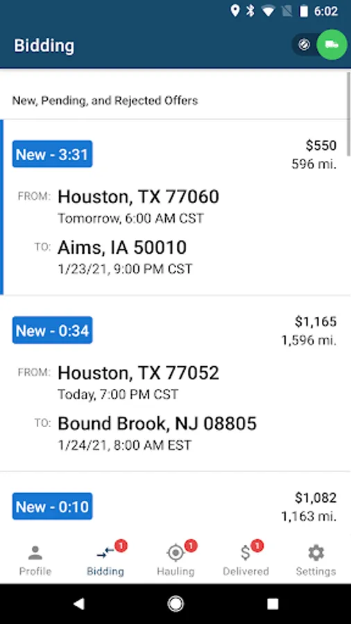 • Our system will generate loads for you that are within 120-mile radius of your device.
