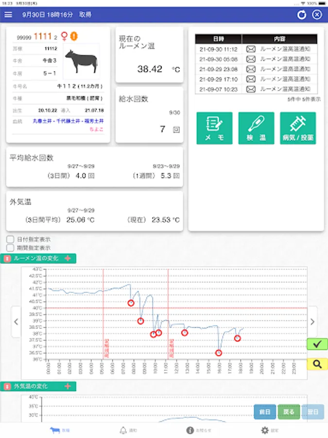 Gastrointestinal Telegraph ® is a service for monitoring the health condition of cows by measuring and monitoring the body temperature (lumen temperature) of cows in real time.