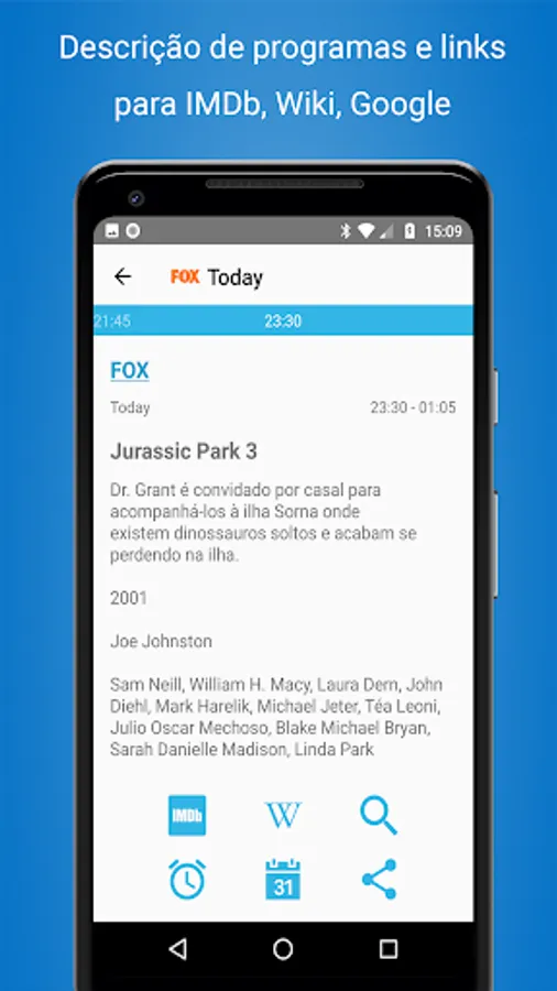 Show plots, often with cast, rating, posters, and images, will help you choose the show to watch. Cisana TV+ offers the possibility to insert a reminder for the start of a program that you want to see on your smartphone's calendar or to set a notification. Thanks to the connection to external sites you can learn more about the programs that interest you. Of course, you can share a broadcast profile with your friends that they might like too.