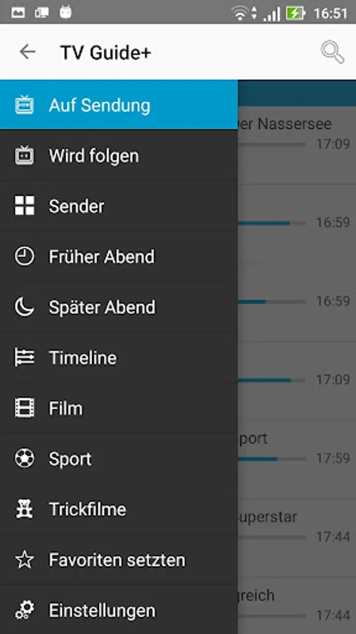 When programs are running, a bar is displayed that visually shows how long the program has started and how long it is until the end of the program. They have a handy timeline for an overview of the schedules and sections that list only movies, sports, and cartoons. You can set your favorite channels to speed up the query.