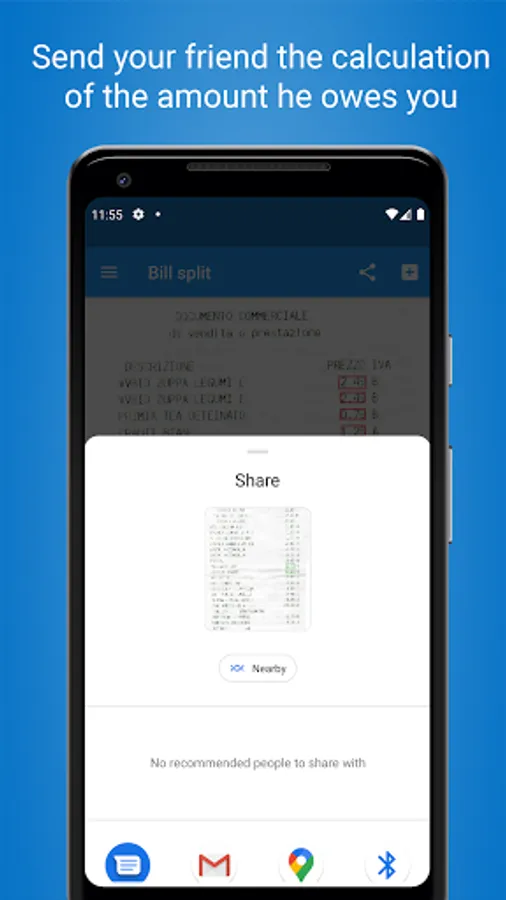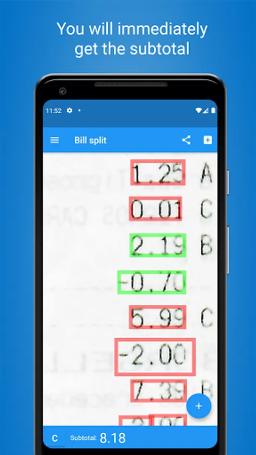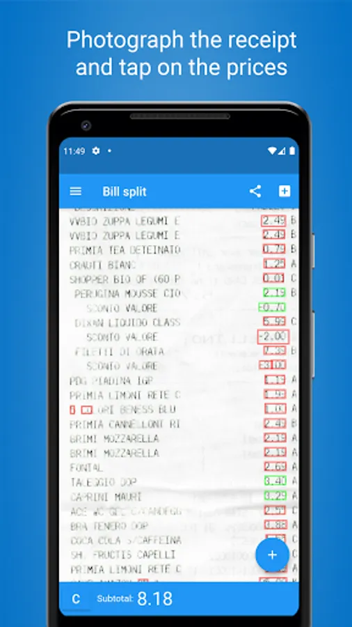 Take a photo of the receipt, you will see all the amounts surrounded by a red box. By clicking on the red box, the single amount will be added to the subtotal. Once you have added all the amounts that interest you, all you have to do is click on share to send the partial to your friends, complete with an image of the receipt with the added items highlighted!