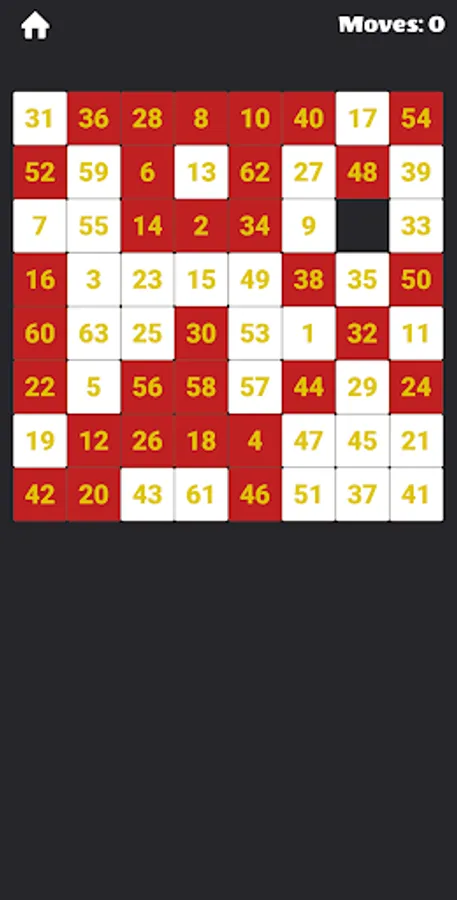 The electronic version of the classic puzzle game known as the Game of 15. The game consists of a square-shaped grid divided into rows and columns, on which tiles are placed, numbered progressively from 1. The tiles can be moved horizontally or vertically, but their movement is limited by the presence of a single empty space. The aim of the game is to reorder the tiles after they have been randomly shuffled (the position to be reached is the one with the number 1 in the top left corner and the other numbers following from left to right and top to bottom, with the empty space in the bottom right corner).