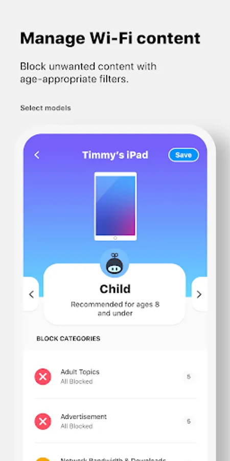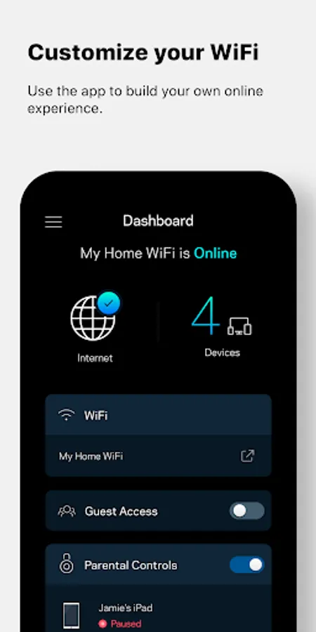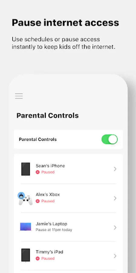 • Parental Controls – Encourage kids' healthy internet behavior by pausing internet access.
