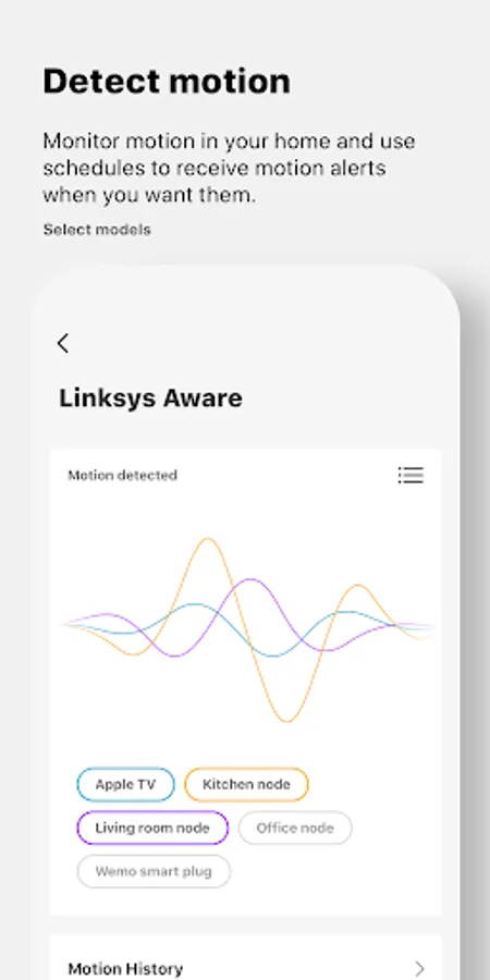 Linksys Aware is a premium subscription for Velop tri-band users. Linksys Aware provides whole-home motion detection for mesh WiFi systems. Set a sensitivity level matching your home and lifestyle, and get notifications when motion meets or exceeds that level. Expand your motion detection with compatible smart home devices.