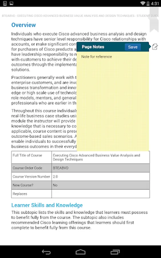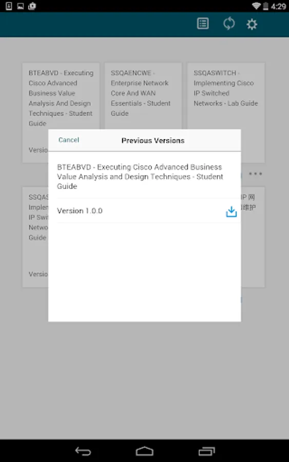 Use the Cisco eReader app to access your Cisco Learning Network Space (https://learningspace.cisco.com/) digital course materials. The digital materials available through the eReader replace the paper book materials distributed through classes taught by authorized Cisco Learning Partners. After downloading the app, log in using your Cisco.com (http://www.cisco.com/) credentials.