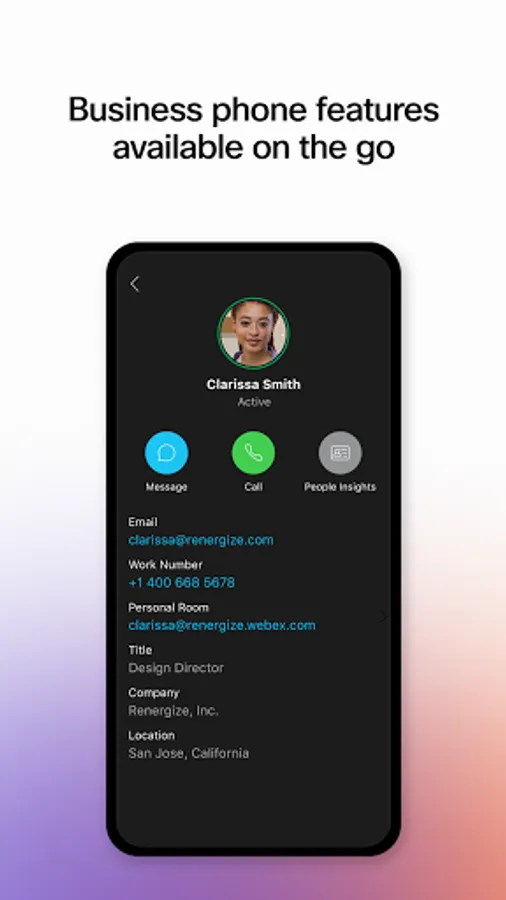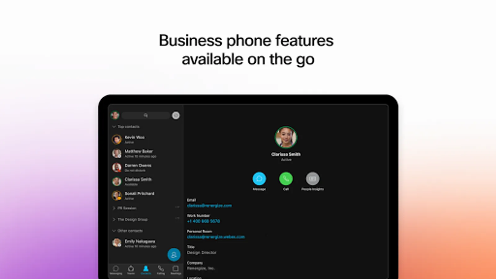 Call: With your favorite calling features built into the app, you have the power of your business phone anytime, anywhere. Instantly start impromptu conversations, access visual voicemail, and more.