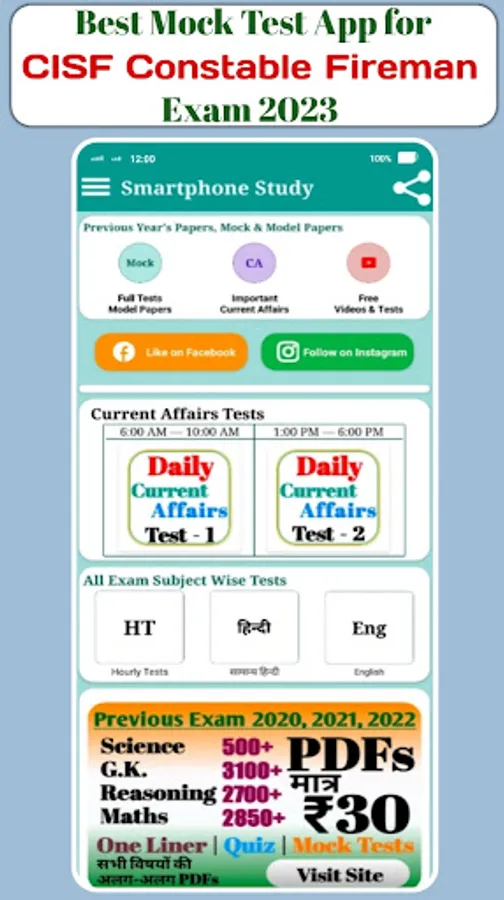 This a Android App for CISF Constable Fireman Exam 2023. In this app users will get mock tests for CISF Constable Fireman Exam and it's model papers. Users will able to grade up their preparation for this exam. With this app users can also Grade up their General knowledge and math solving power.