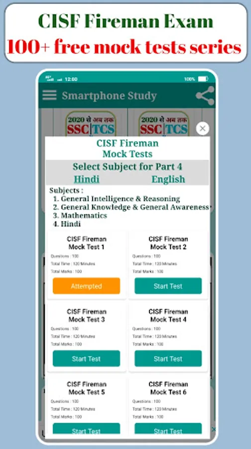 This is package of Practice sets or mock tests. It will help users to save their TIME and they can do more preparation for their Exams. It is based on CBT ( Computer based test) and online mode exams. By using this app, user can avoid understanding issues happened at the time of examination. User can get more practice sets by visiting our website. For any exam, user can get related practice sets of SMARTPHONE STUDY.